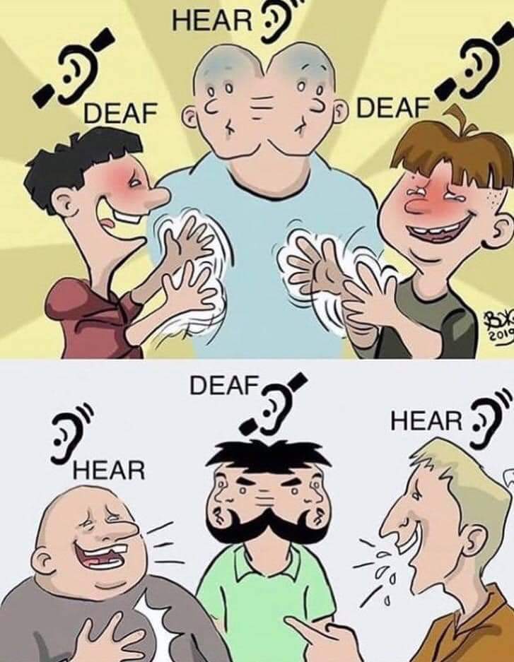 See how hearing people come in chatroom and sign language full of room. See how deaf people come in chatroom and lipmovong full of room.